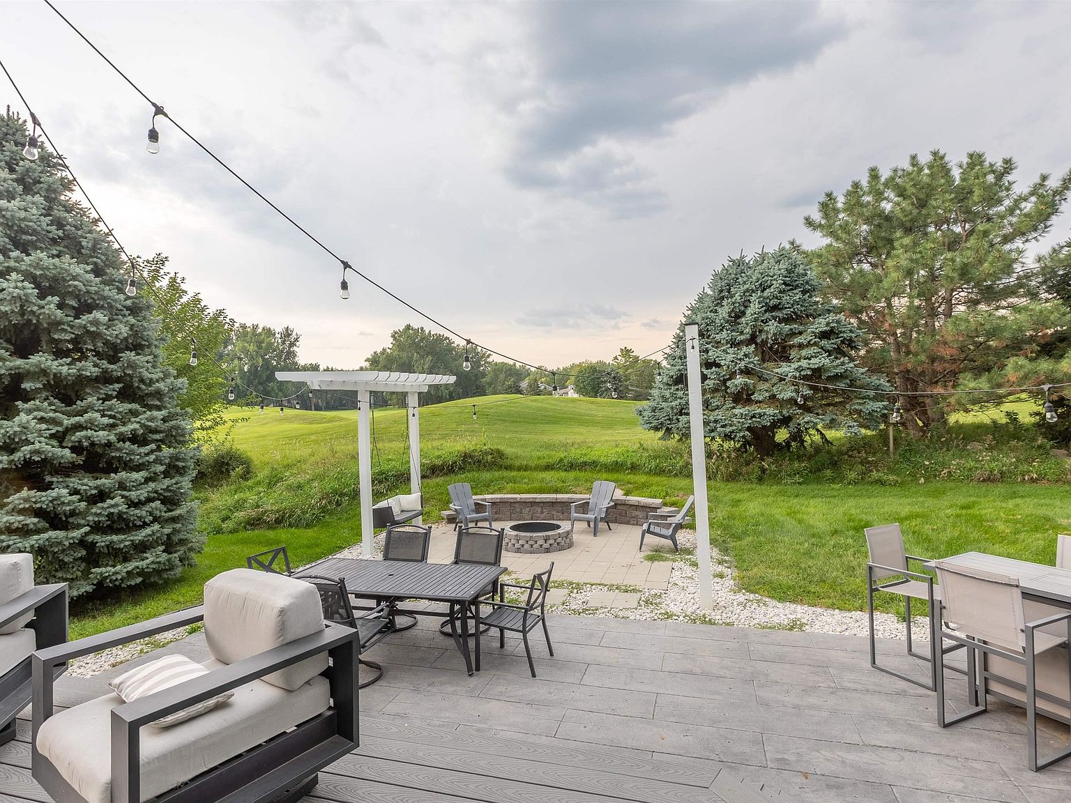 Incredible two story home in the Dakota Dunes Country Club addition with many recent updates. This spacious 5 bedroom, 4 bath home sits right on hole 1 of the golf course with great course and pond views. The main level has been tastefully updated offering a great mix of comfort and modern finishes. The spacious living room offers great views and a brand new fireplace wall. The large eat in kitchen has been remodeled, opens to the living area, and features new hardware, old island removal, painted white cabinetry, and a new butler's pantry! Main level also features an updated half bath, formal dining area, and a laundry / mud room. The second level has an impressive master suite with a full bath, walk in tile shower, dual vanities, walk in closet, and a private deck with unbelievable views. Upper level also includes 3 additional bedrooms and a full bath. The lower level in this home has also been remodeled by the current owners and is a great space for entertaining. The new wet bar was recently finished, the full bath has a new vanity and mirror. The basement also has a large family room, a legal 5th bedroom, and storage space. The backyard has been transformed into your very own backyard oasis. This private setting features great views after tree removal, a new composite trex deck, a concrete stamped patio, new fire pit, outdoor kitchen, new pergola, and great exterior lighting. Recent updates also include fresh paint throughout giving this home a clean modern feel. This one of a kind property has plenty of space, a great layout, and an unbeatable location on the golf course. There is a lot to love in this home so Don't Delay!